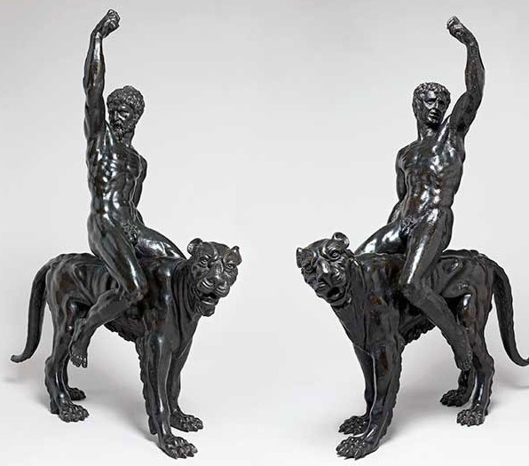 The origin of the two statues, of particular power and energy, not to mention beauty, is unknown, since they were first noted in 1878 in the collection of Adolphe de Rothschild, but the attribution to Michelangelo at the time was contested. Since then the statues changed hands various times. At an exhibition at the Royal Academy’s big Bronze show in 2012, they were attributed to the circle of Michelangelo and dated towards the middle of the 16th century.