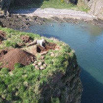 The first attempt to investigate the remote site was made in 1832, when a group of youths from Stonehaven finding only a number of decorated Pictish symbol stones and as they were throwing them into the sea, noticed some were also carved. Several years later some of the stones were recovered from the sea and the carvings on them were studied. They were however, ‘rough and ready’ compared to other known Pictish symbol stones and this prompted the team to excavate the site.