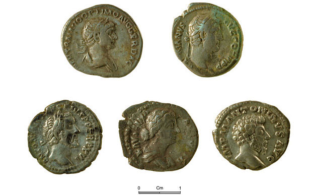 The find comprises 91 Roman silver denarii (coins) which were buried in a locally-made pot. The coins date from the period of Emperor Nero (AD 54-68) to Marcus Aurelius (161-80) and the latest coin was struck in 163-4. Fourteen emperors and empresses are represented. The hoard also contained three coins issued by Mark Antony in 31 B.C., still in circulation after nearly 200 years.