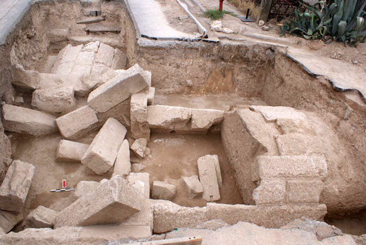 What’s interesting about the new Macedonian tomb of Pella is its architectural form. Apart from the central room with an ante-chamber and a main chamber, the tomb also has two side chambers on the north and the south side of the ante-chamber. The vaulted roof of the main room with walls of 2.5m height has been destroyed. The vaults of the side chambers, however, are preserved in an excellent condition. In the interior of the southern side chamber there is a stone pedestal, upon which the bier of the deceased had been placed. The entrance to the northern chamber was protected by a barrier, of which the lower block is preserved.