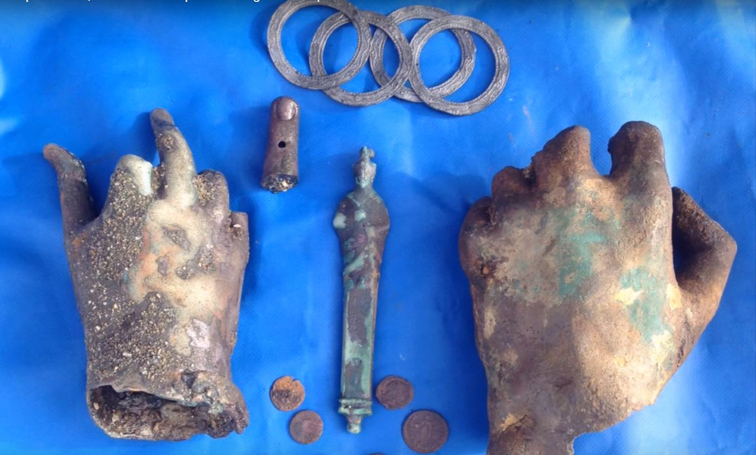 A preliminary study of the iron anchors suggests there was an attempt to stop the drifting vessel before it reached shore by casting anchors into the sea; however, these broke – evidence of the power of the waves and the wind which the ship was caught up in”. Sharvit and Planer stress, “A marine assemblage such as this has not been found in Israel in the past thirty years. Metal statues are rare archaeological finds because they were always melted down and recycled in antiquity.