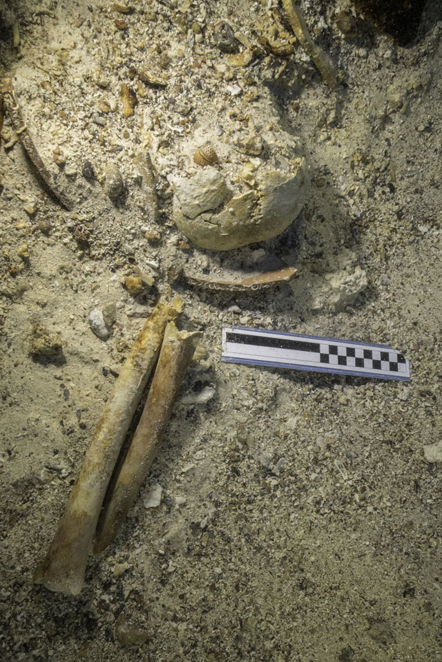 Led by archaeologists and technical experts from the Hellenic Ministry of Culture and Sports and Woods Hole Oceanographic Institution (WHOI), the team excavated and recovered a human skull including a jaw and teeth, long bones of the arms and legs, ribs, and other remains. Other portions of the skeleton are still embedded in the seafloor, awaiting excavation during the next phase of operations.