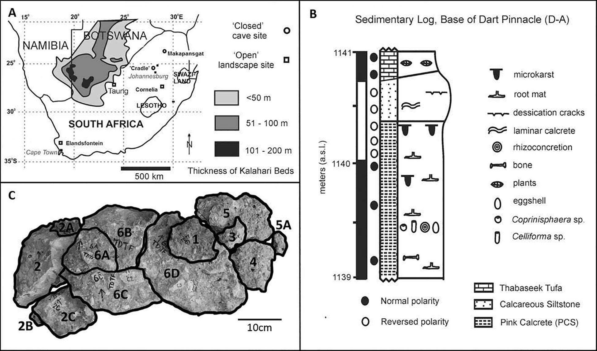 The nest is about 13 millimetres long and was found in the same deposits of pink clay and siltstone as the Taung Child, at the Buxton-Norlim Limeworks on the southeaster edge of the Kalahari Desert.