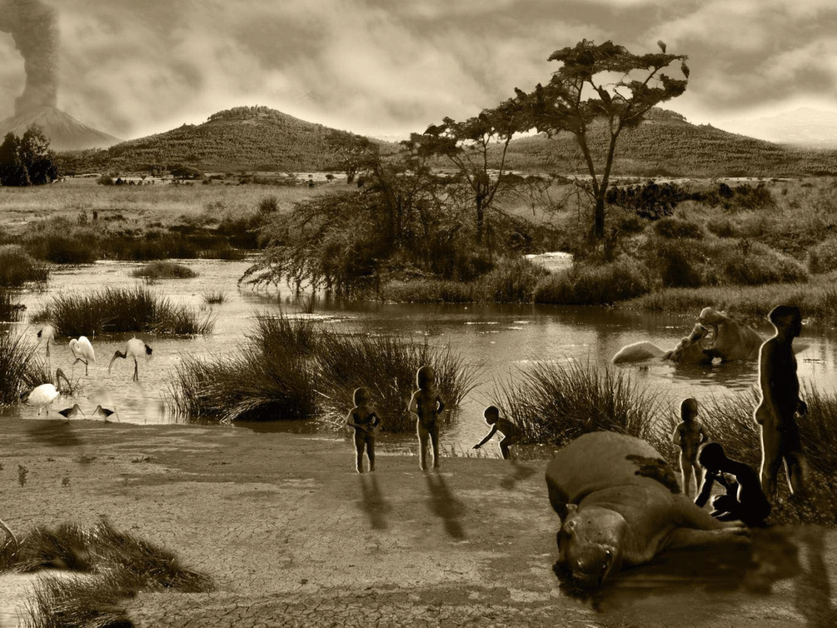 The site, Melka Kunture in Ethiopia, bears traces of human activity dating 700,000 years back. The human species that inhabited the area was called Homo heidelbergensis. The footprints found at the site are of adults as well as children, sometimes as young as a year old. They were made on a muddy bank by a pool of water and were preserved by a layer of volcanic ash. On the site researchers also found stone tools and the remains of a hippo.