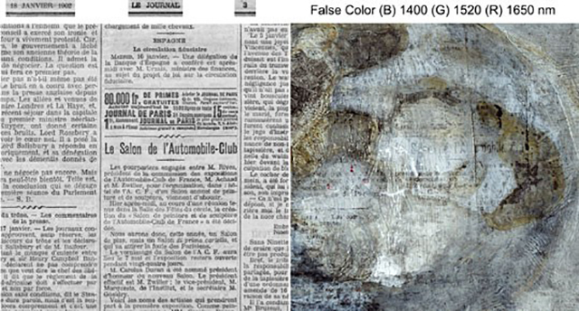 Recent hyperspectral infrared imaging conducted by John Delaney, senior imaging scientist, National Gallery of Art, Washington, of Pablo Picasso’s Mother and Child by the Sea (1902), a Blue Period painting in the collection of the Pola Museum of Art, Japan, revealed portions of printed text in French similar to newsprint. Using the readable text, Keiko Imai, chief curator, Pola Museum of Art, was able to identify the source of the text as an issue of the French daily newspaper Le Journal published on January 18, 1902. While the reason for the presence of newsprint in the paint layers is a mystery, the discovery is significant for Picasso scholars due to the proximity of the date to the artist’s move from Paris to Barcelona. The study also provided more information about a prior paint composition seen in the x-radiograph. The infrared images also show another earlier signature by the artist in the opposite orientation. Mother and Child by the Sea is on view at the Pola Museum through mid-August of 2018. The painting will be on loan to the Musée d’Orsay for their upcoming exhibition, Picasso: Blue and Rose, from September 18, 2018, through January 6, 2019.