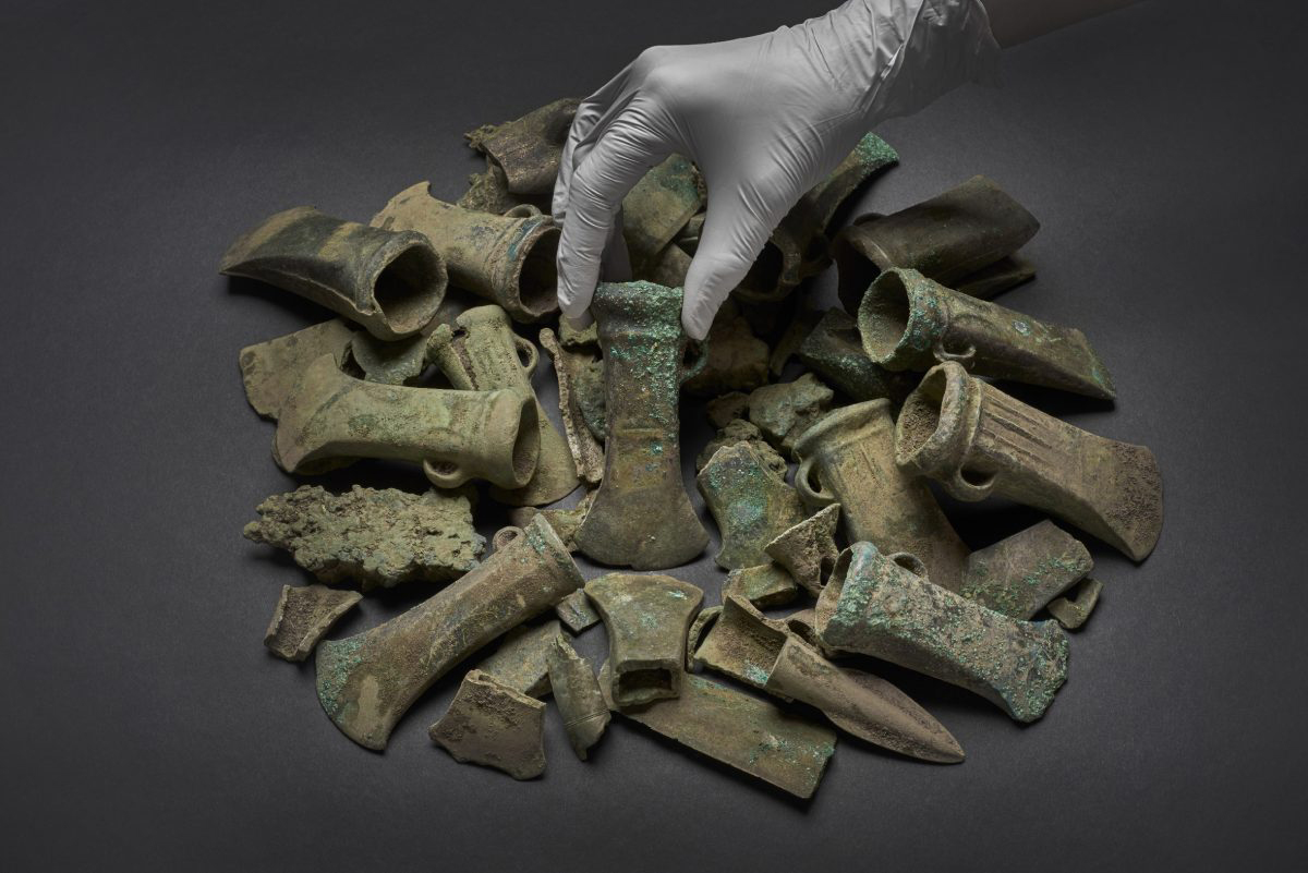 A total of 453 bronze objects dating between c.900 and c.800 BC have been uncovered during a planned archaeological investigation, with weapons and tools including axe heads, spearheads, fragments of swords, daggers and knives found alongside some other unusual objects, which are rarely found in the UK.