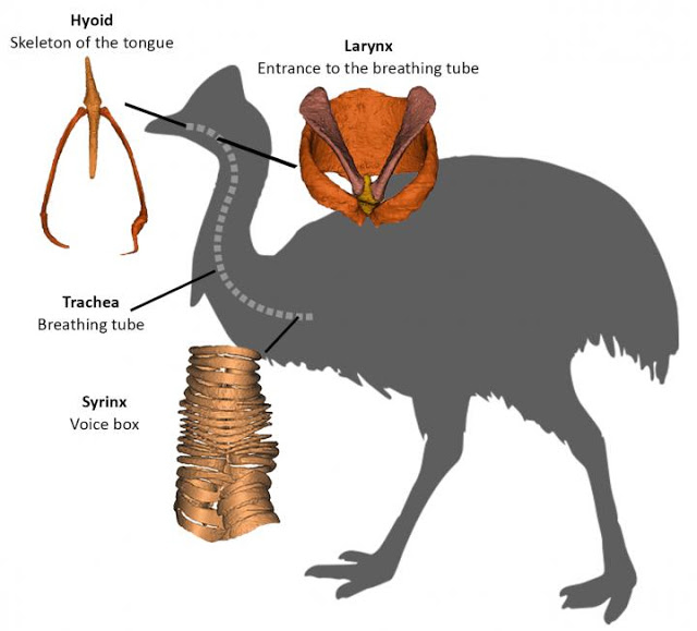 Researchers from Flinders University in South Australia recognised that the throat structures involved with breathing, eating and vocalising (the syrinx, hyoid, and larynx) were almost totally unknown.