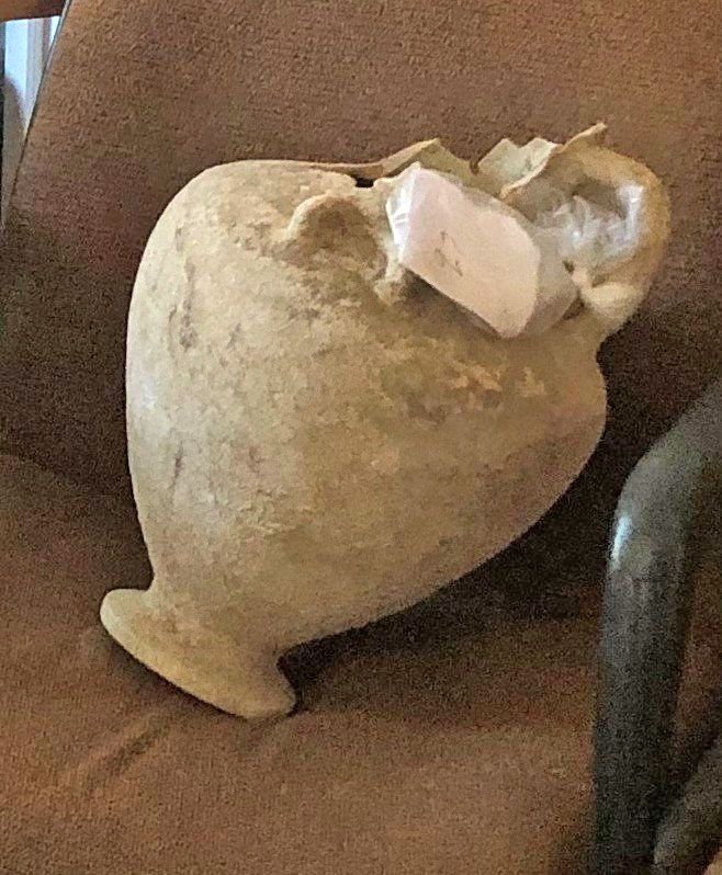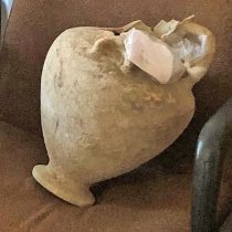 A search of his home was conducted and the following artefacts were found and confiscated: the upper part of a marble tombstone in relief, 81 ancient artefacts (figurines, loom weights, lamps, perfume jars, vials, vases, jugs, a cantharus cup, an amphora, e.t.c.) and 47 coins.