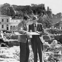 John K. Papadopoulos, the current Director of the Agora Excavations and Professor of Archaeology and Classics at UCLA, observes that “Behind the consummate architect, draftsman, model-maker, and archaeologist that was John Travlos was a person who could combine theory and practice as if there were no distinction between the two. He not only drew the plans for the reconstruction of the Stoa of Attalos, he built the restored monument, together with George Biris, who was the consulting engineer, and under the supervision of another great architect, Anastasios Orlandos, representing the Greek Ministry of Culture. Travlos was also that rare type of scholar who had the ability to see both the big picture and the nuances that inspire our understanding of the past. A good example of the former are his many publications, still widely consulted today. As for the nuances, one of my favorites was a throwaway line in one of his books. Standing on the belvedere on the Kolonos Agoraios near the Hephaisteion, Travlos imagined that it must have been from this very spot that Pheidias stood watching the Panathenaic procession, and it was this that inspired the great sculptor to conceive of the Parthenon frieze.”