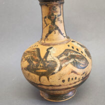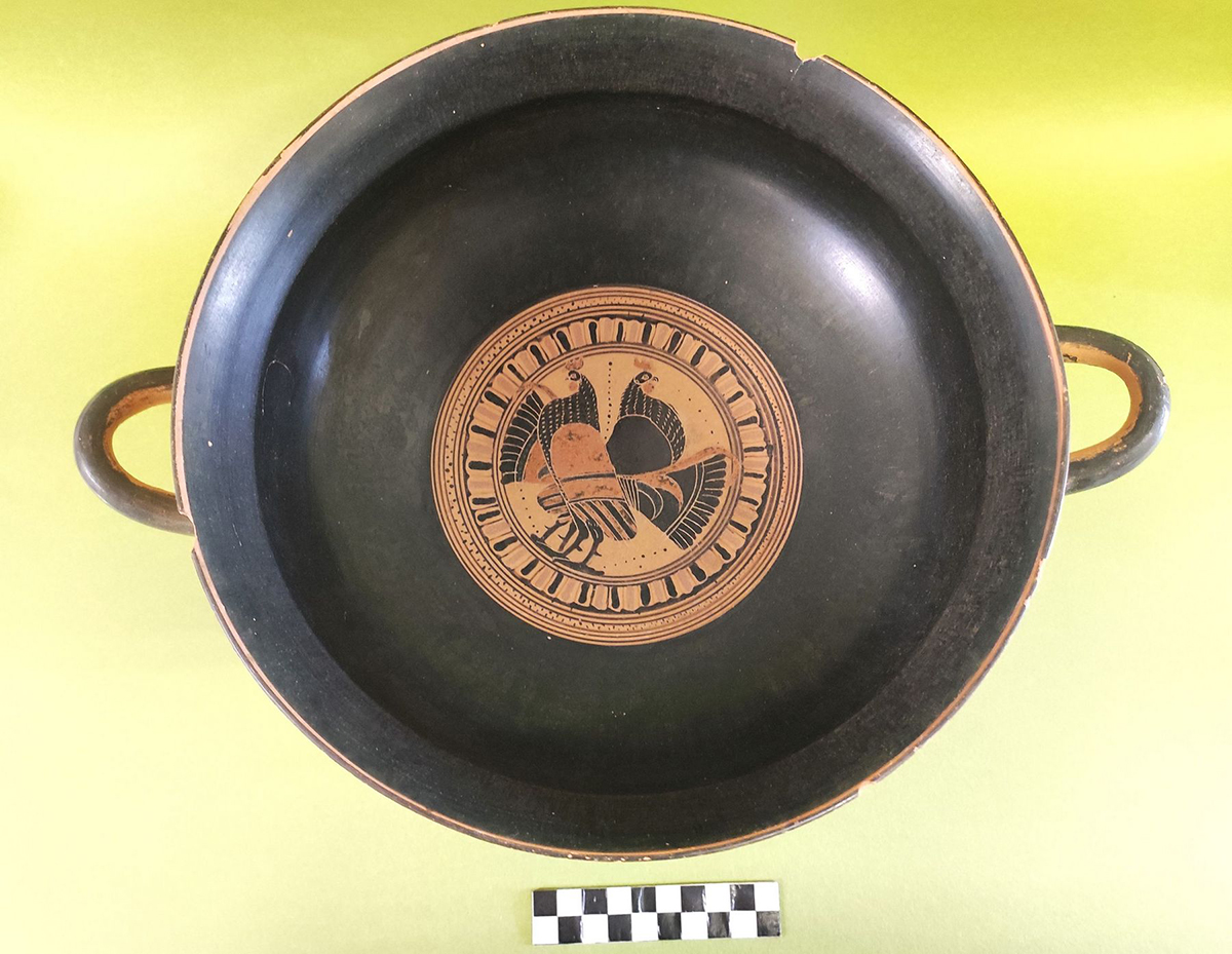 Other graves also yielded significant finds, such as a female burial from the mid-6th century BC, which was accompanied by a “Siana type” kylix with a depiction of roosters, and a trefoil oinochoe decorated with mythical creatures and the god Hermes as “Psychopompos”. Bronze bossed phialae, black-figure and black-glazed pottery linked to the Ceramic Workshop of Akraephia are also among the cemetery’s findings.