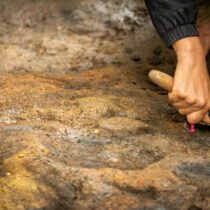 Iron pyrite is a naturally occurring mineral that can be used to strike flint, creating sparks to ignite tinder. Pyrite’s rarity in the local area suggests these early people had knowledge of its properties, where it could be sourced and brought it to the site to make fire.