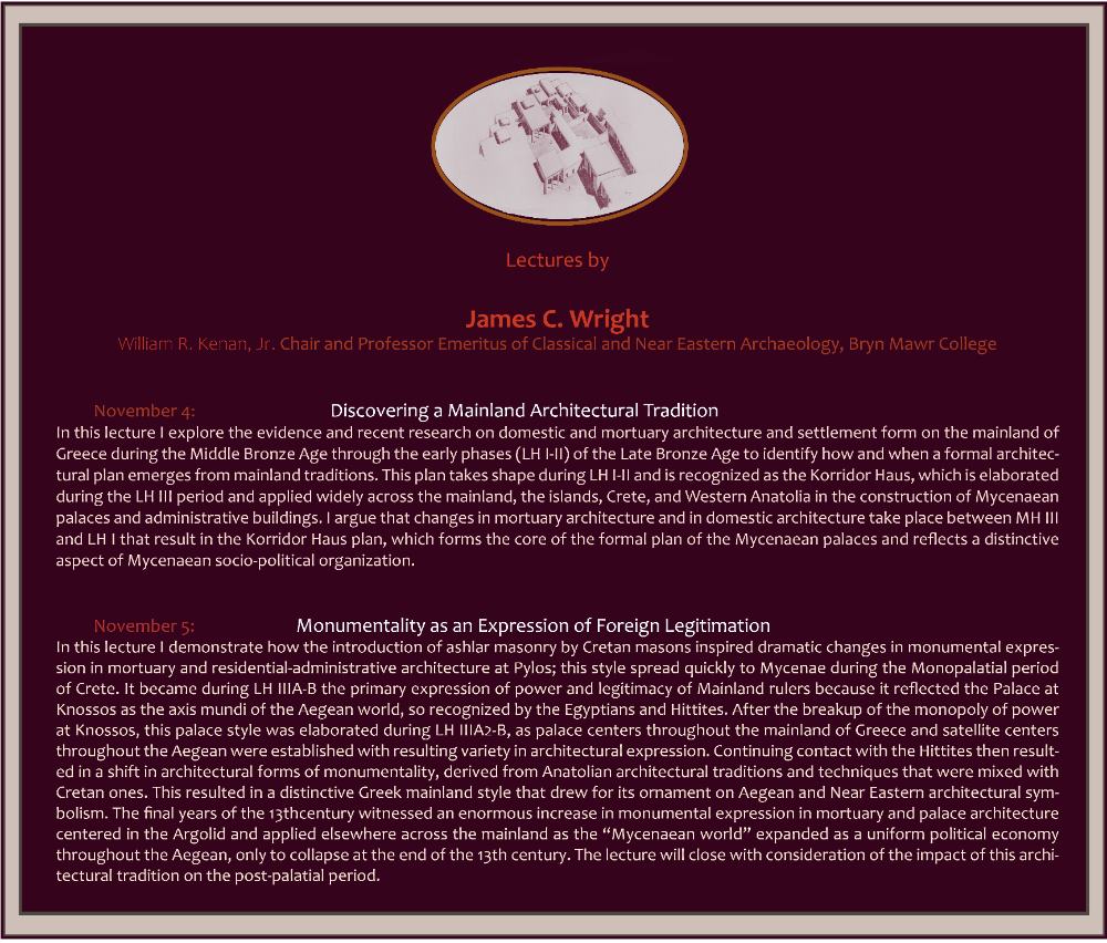 The Swedish and the Finnish Institutes at Athens have the honour to invite you to two lectures in honour of Professor Robin Hägg entitled The Archaeological History of the Mycenaean Palace, presented by James C. Wright, William R. Kenan, Jr. Chair and Professor Emeritus of Classical and Near Eastern Archaeology, Bryn Mawr College.